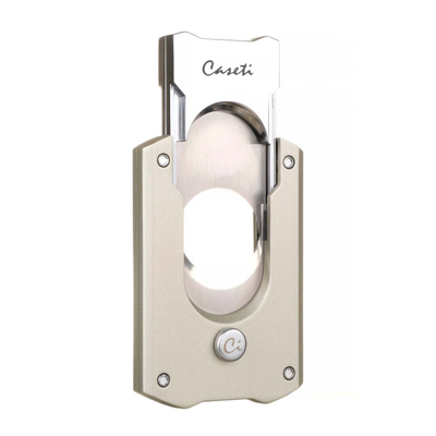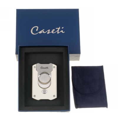 Сигарная гильотина от французского бренда Caseti. Действует по традиционному принципу гильотин — двойное лезвие в металлическом корпусе раскрывается пластинчатой пружиной при нажатии на кнопку. Отверстие диаметром 21 мм. Фирменная подарочная коробка. Вес 160 гр.