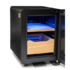 Управление влажностью: хьюмидор рассчитан на автоматическое поддержание влажности в районе 70% при наличии источника влаги внутри (лоток с водой, губка или увлажняющие пакеты). Хьюмидор при этом должен быть подготовлен (предувлажнен) по прилагаемой инструкции. Точная настройка влажности в пределах +- 5 % обеспечивается регулировкой температуры: повышение температуры в камере устройства увеличивает влажность, понижение температуры уменьшает влажность. Также для точной подстройки уровня влажности можно положить внутрь увлажняющие пакеты 84% (1-2 шт х 60 гр) в добавок к лотку с водой. Визуальный контроль температуры и влажности — по показаниям на дисплее от встроенных датчиков. Датчик влажности калибруется (см. прилагаемую инструкцию).
