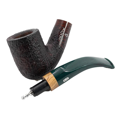 Chacom Noël 2023 №808 представляет собой изогнутую трубу “венгерской” формы с коричневой шлифованной поверхностью, оливковым кольцом и полусвистом из акрила яшмово-зеленого цвета. Она крепится к фильтру диаметром 9 мм с адаптером.
