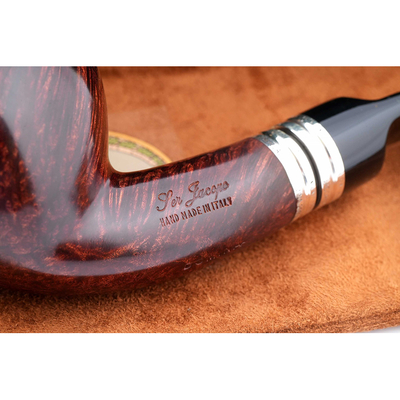 Трубка SER JACOPO модели DOMINA 2003 — Трубка 2003 года. Выпущенные в разных вариантах отделки 365 штук разошлись по трубочным коллекциям всего мира. А в 2025 году, по просьбам поклонников марки, мастерская Ser Jacopo решила повторить некоторые свои старые модели в серии Historica, выпустив ограниченные партии легендарных трубок, разработанных еще Джанкарло Гуиди, основателем SER JACOPO. Количество созданных трубок Historica очень мало из-за труднодоступности высококлассного бриара и недостатка оригинальных серебряных колец, оставшихся от старого производства. Каждая трубка сделана максимально близко к историческому прототипу и имеет на чубуке свой порядковый номер.