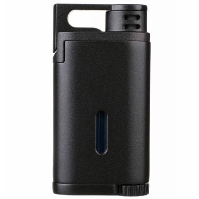 Сигарная газовая зажигалка Belmont с турбо-пламенем. Топливное окно окрашено в синий цвет и расположено на задней части корпуса для моментального считывания уровня топлива.